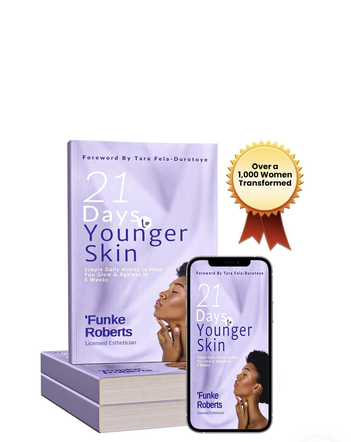 Products 21 Days to Younger Skin (E-Book) Was Now $8.99 SaleDiscover the simple daily habits that can take years off your skin in just three weeks. Written by licensed esthetician Funke Roberts, with a foreword by Tara Fela-Durotoye, 21 Days to Younger Skin is your day-by-day guide to glowing, ageless skin — no expensive treatments required. Each chapter walks you through practical, easy-to-follow routines that fit into your everyday life so you can finally achieve the radiant complexion you deserve. Quantity Enter an amount $ Add to Cart Add to Cart You may also like Previous Next Sale Products 21 Days to Younger Skin $19.99 Sale Products Kan-in Kan-in Exfoliating Bath Sponge $10.00 Sale Products Amaradan All-Natural Shea Butter $20.00
